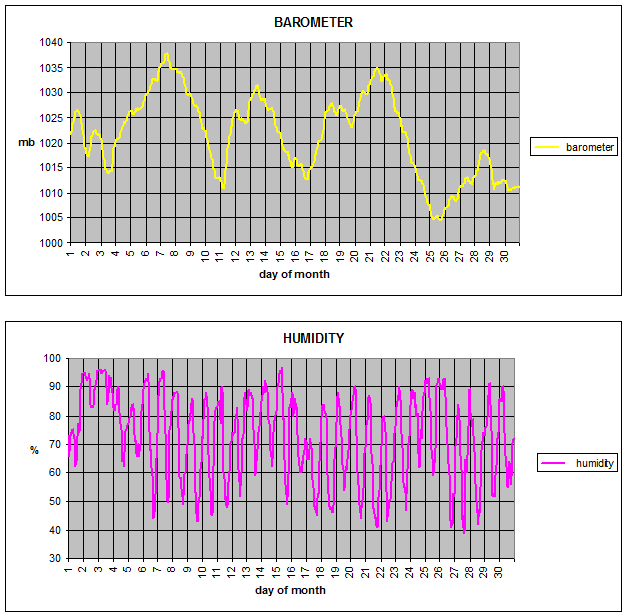 Average barometer = 1021.4 mb