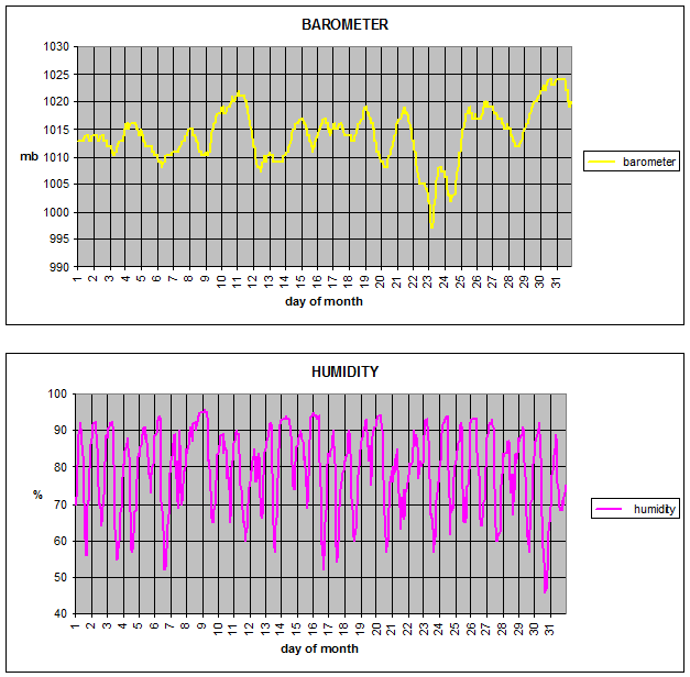Average barometer = 1013.9 mb